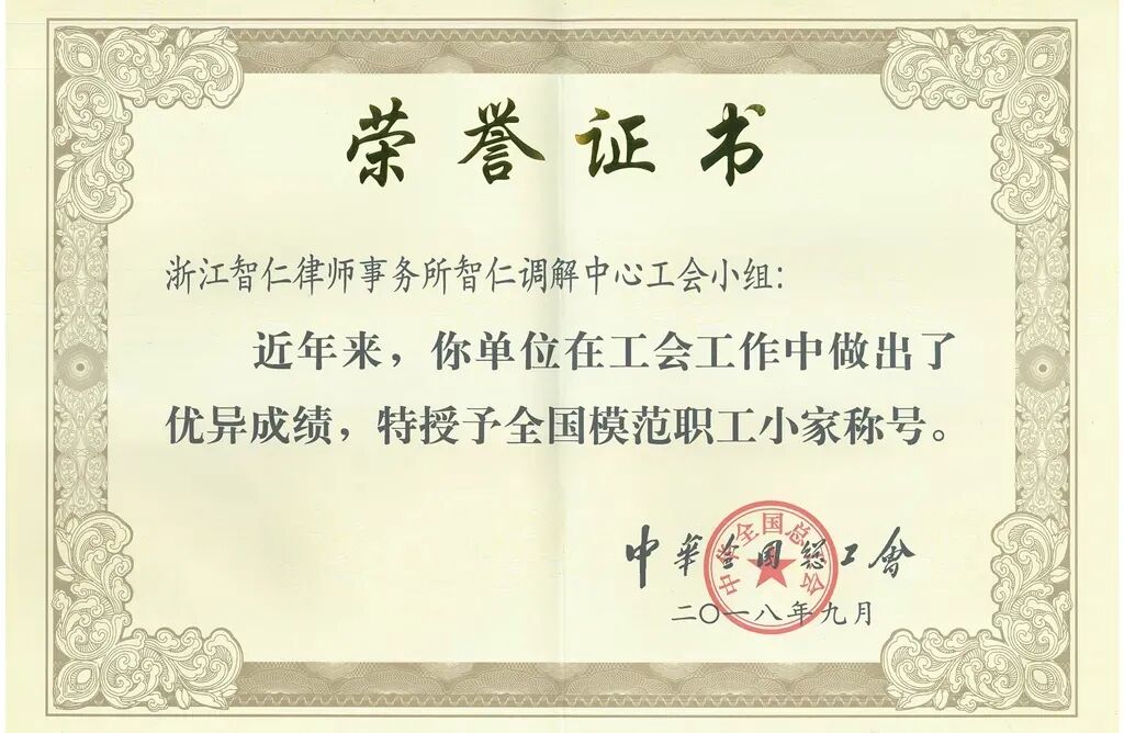 智仁所一直秉承着“智者洞先机,仁者济天下”的服务理念,时刻不忘律师职业所肩负的社会责任,始终不懈地在多元化解纠纷机制方面努力探索。自实施调解工作,尤其推出“党员带头、党建带动”双带律师调解工作以来,智仁所的调解工作颇有成效,智仁所调解中心曾先后被授予西湖区“基层工会特色项目创新奖”、“全国模范职工小家”等称号,是杭州市首批授牌律师调解工作室的律所之一,多名被市中院、市司法局、市律协授予优秀律师调解员的光荣称号。