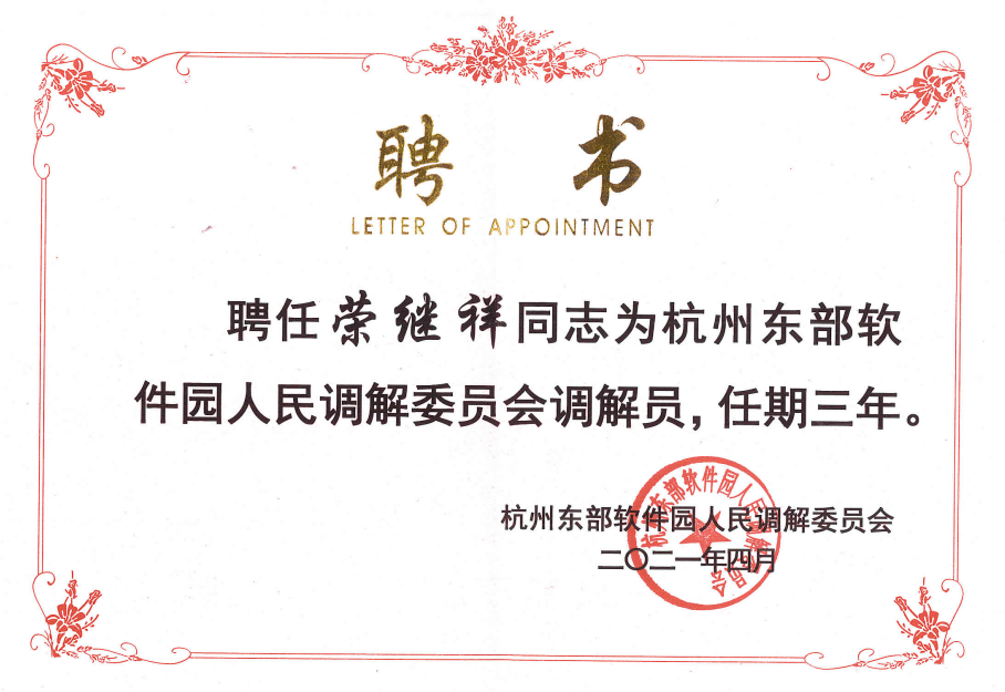 【献礼建党百年之高光时刻】刘恩主任担任东部软件园人民调解委员会副主任,