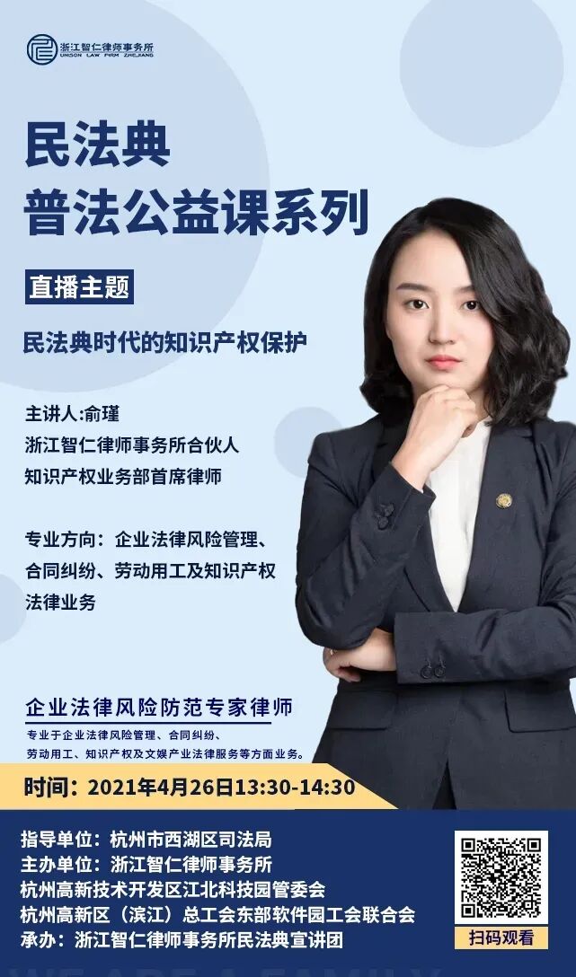 民法典普法公益课系列之《民法典时代的知识产权保护》,由俞瑾律师主讲。