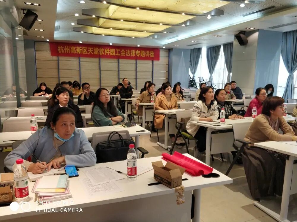 韩阳律师进行师杭州高新区天堂软件园工会法律专题讲座,分享劳动合同解除、变更、终止技巧与补偿金支付实务。