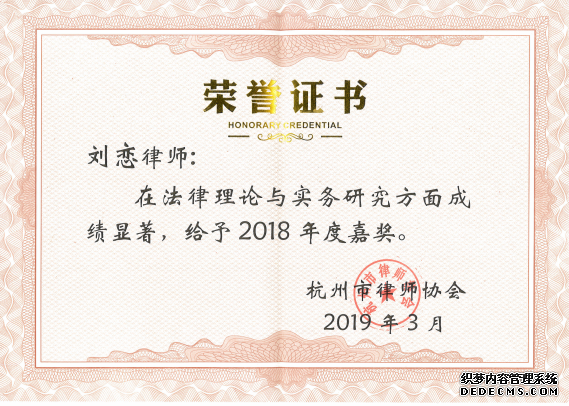 刘恋律师在促进律师行业发展方面贡献突出,荣获2018年度嘉奖
