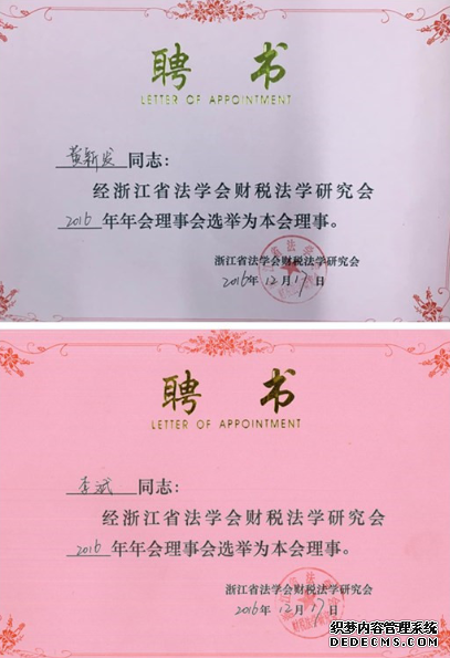 黄新发和李斌律师当选浙江省法学会财税法学研究会理事